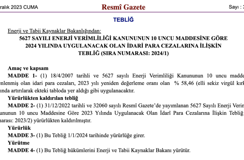 Enerji verimliliğini ihlal edenlere verilecek para cezası yüzde 58,46 artırıldı