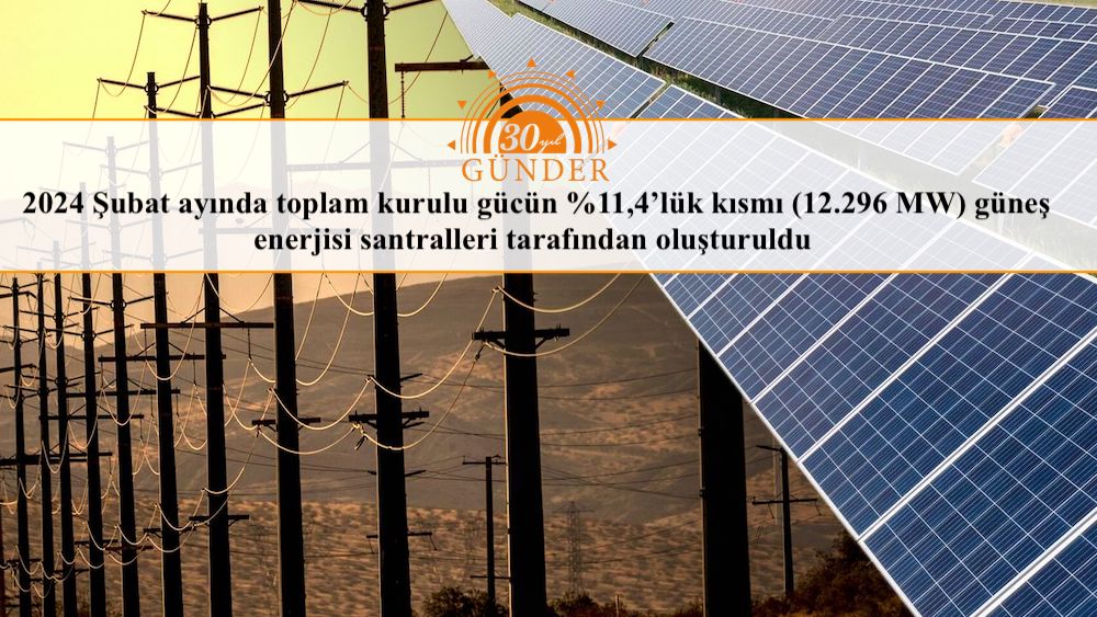 2024 yılı Ocak ayı sonunda 107.259 MW olan toplam kurulu güç değeri 500,10 MW’lık artışla 2024 yılı Şubat ayı sonunda 107.759 MW olarak kaydedildi. 2024 Şubat ayında toplam kurulu gücün %11,4’lük kısmı (12.296 MW) güneş enerjisi santralleri tarafından oluşturuldu.