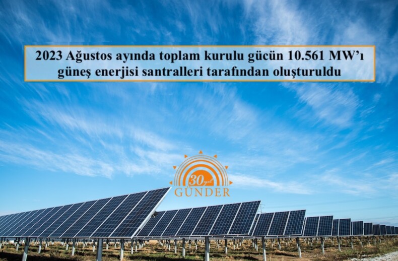 2023 Ağustos ayında toplam kurulu gücün 10.561 MW’ı güneş enerjisi santralleri tarafından oluşturuldu